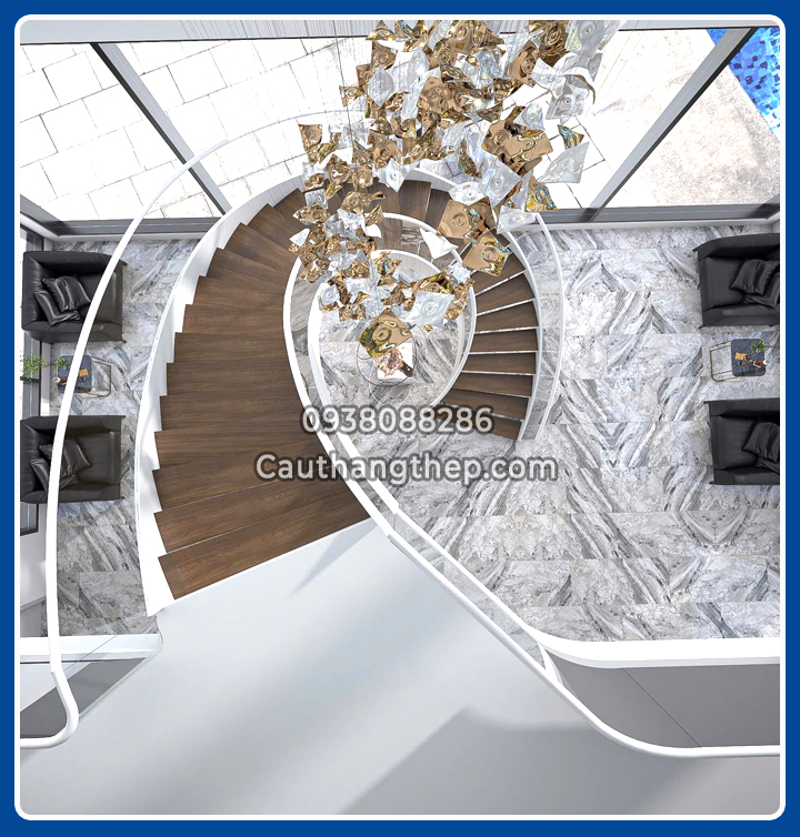 • Tiết kiệm diện tích tối đa: Thiết kế xoay quanh trục giúp giảm diện tích chiếm dụng so với cầu thang truyền thống. Phù hợp với căn hộ có không gian mở hoặc diện tích sàn hạn chế.