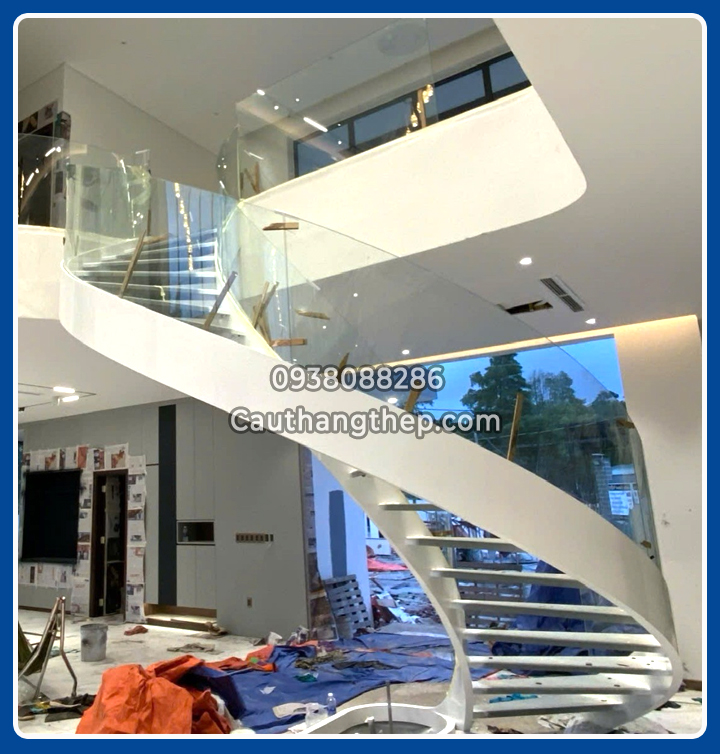 - Cầu thang xoắn ốc bằng kính cường lực: Nổi bật với vẻ đẹp sang trọng, tinh tế. Kính cường lực trong suốt giúp ánh sáng lan tỏa, tạo cảm giác không gian rộng hơn. Mẫu này đặc biệt phù hợp với những ngôi nhà mang phong cách hiện đại, đẳng cấp.